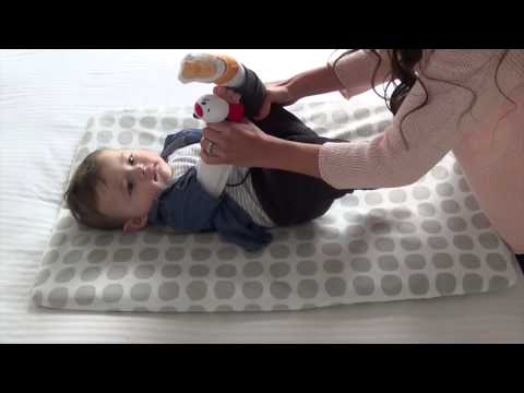 Estimúlalo a voltearse: Una vez que el niño tenga el control de su cabeza es hora de enseñarlo a girar su cuerpo. Coloca al niño sobre una manta suave, levanta lentamente un lado de la manta para que el niño ruede hacia el otro lado, continúa haciéndolo rodar mientras le hablas demostrándole tu alegría. Esta actividad de estimulación temprana favorece la motricidad del bebe.